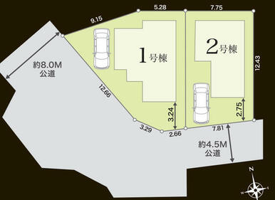 | 用途地域 | 1種低層 | 接道状況 | 南西8.0m 公道 接面12.6m 南4.5m 公道 接面2.6m |