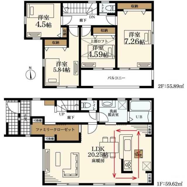 | 間取り(内訳) | 4LDK(洋7.2/5.8/4.5/4.5LDK20.2) | 建物面積 | 115.51㎡ |