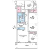 | 設備 | カウンターキッチン ウォークインクローゼット バイク置き場 収納スペース 室内洗濯機置場 シューズIC 二重床 エレベーター 給湯 都市ガス 2面バルコニー 駐輪場 照明器具 | ||
