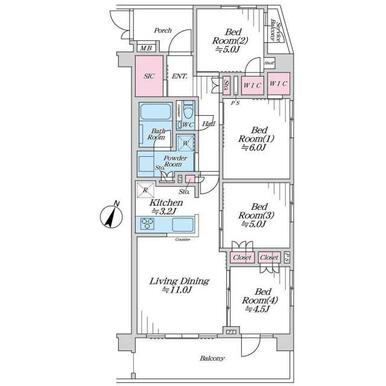 | 間取り(内訳) | 4LDK(洋6/5/5/4.5LDK14.2) | ||